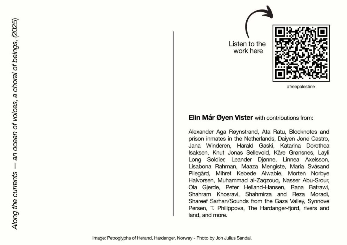 Drawing on the thematic framework that shapes the Epos programme, ‘Water as a Linker and Separator,’ Along the currents listens and responds to the local coastline and fjord, weaving together a multitude of stories and voices. These come from lands that the North Atlantic Current has passed by, as this powerful warm boundary extends the Gulf Stream northeastward. Along its route, it has swept up entangled histories of belonging, connection, land protection, and resistance.